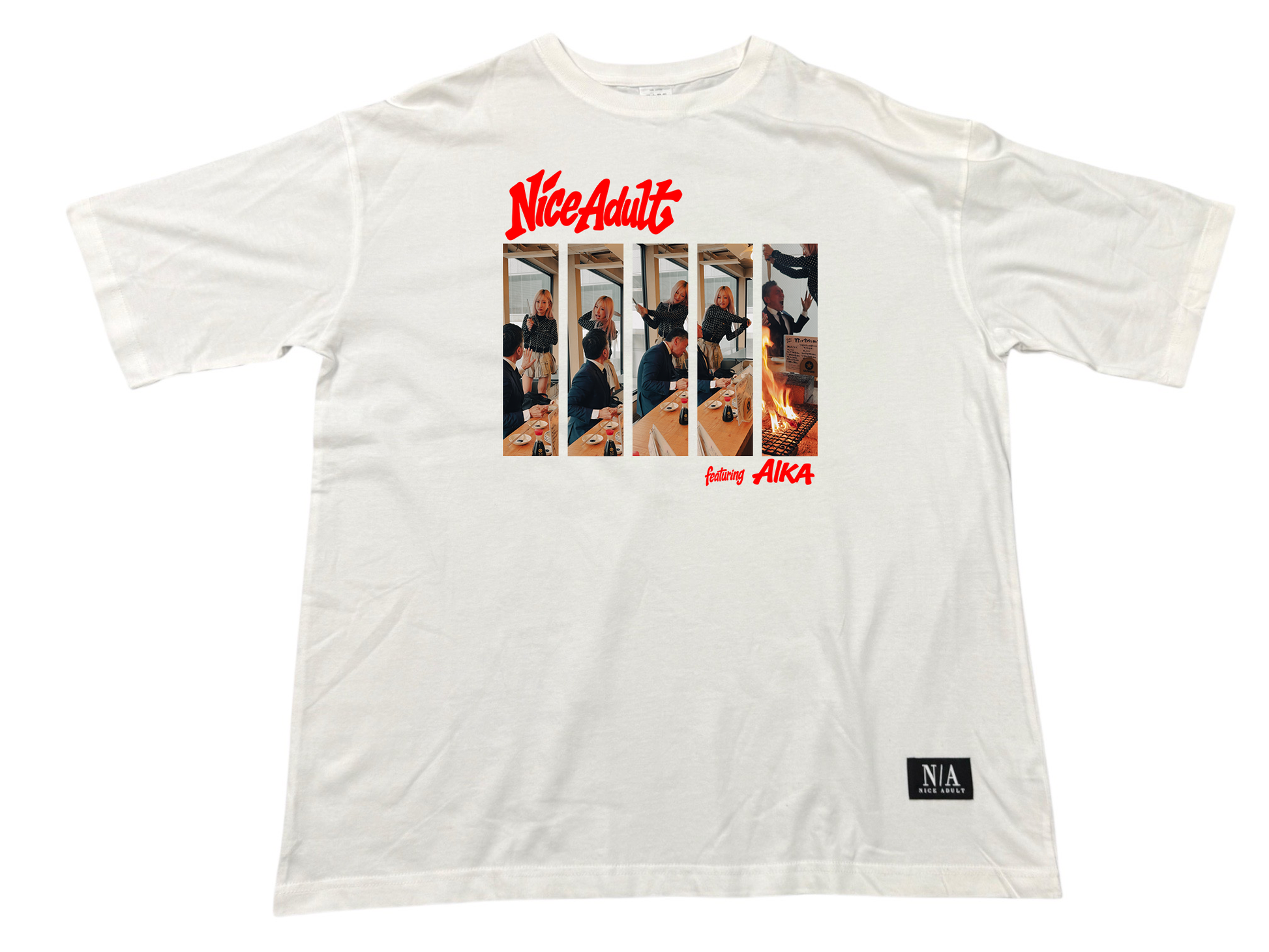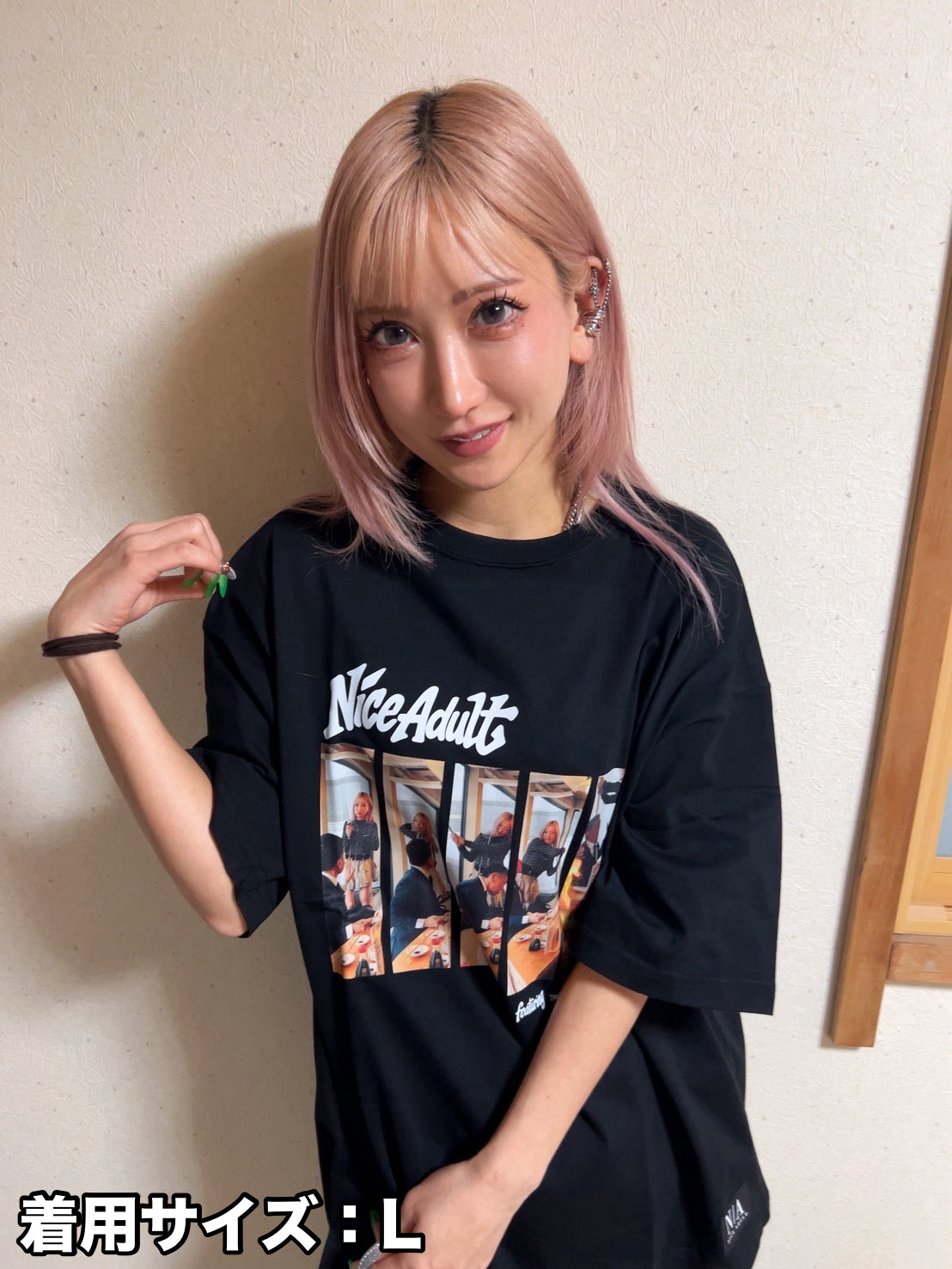 This collaborative T-shirt commemorates AIKA's appearance on the NiceAdult channel. It will be available only during the video streaming period. N/A brand print name will be embroidered on the front hem. There is no back print. It will be a big silhouette type T-shirt with a large and firm fabric. The product will be shipped within 5 business days from the date of order.
