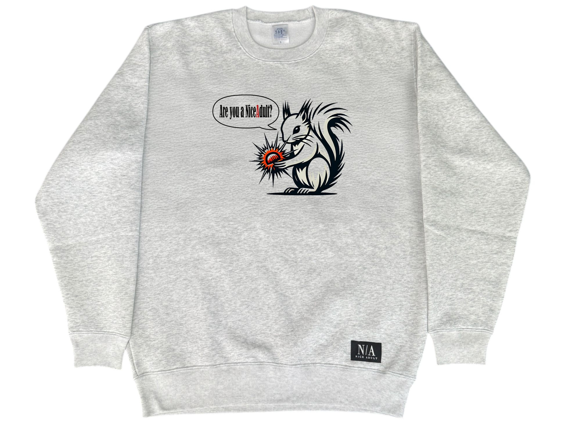 栗&リスの新デザインによるスウェットトレーナーが新登場!!カラーはアッシュ。フロントには栗&リスの新デザインプリントとN/Aブランドのネームタグをあしらい、背面首元にはAVマークの刺繍ロゴ。サイズは男女兼用となります。数量限定ですので、ご注文はお早めに!