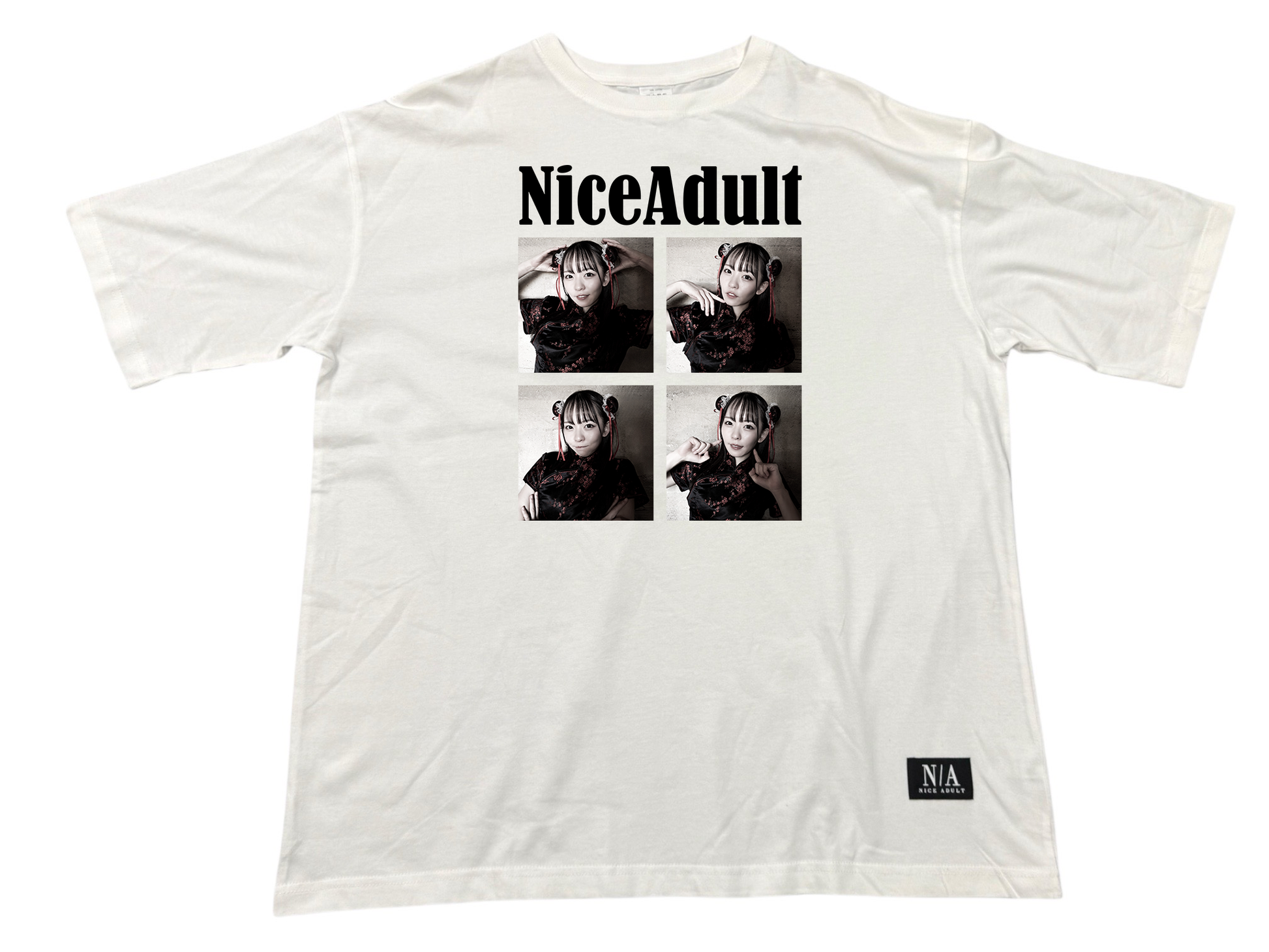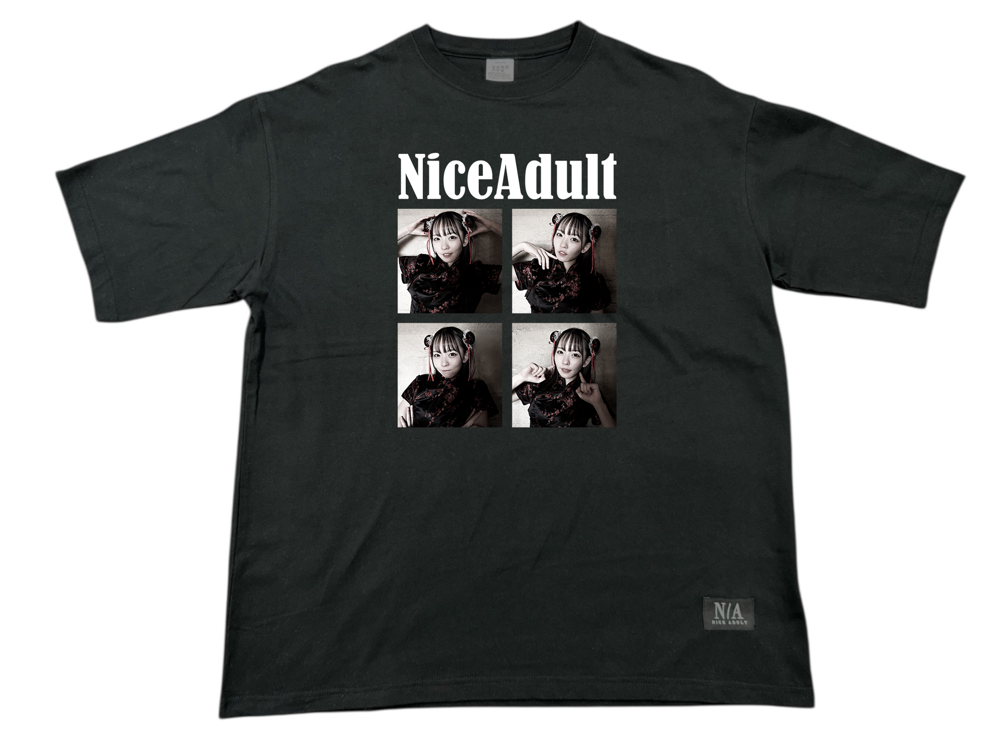 This collaborative T-shirt commemorates Meisa Nishimoto's appearance on the NiceAdult channel. It will be available only during the video streaming period. N/A brand print name will be embroidered on the front hem. There is no back print. It will be a big silhouette type T-shirt with a large and firm fabric. The product will be shipped within 5 business days from the date of order.