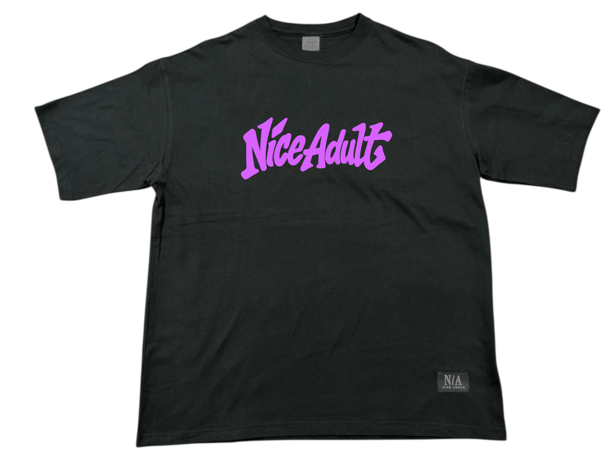 NiceAdultの新しいブランドロゴのショッキングピンクバージョンとなります。フロントの裾にN/Aブランドのプリントネームの刺繍が入ります。バックプリントはありません。ビックシルエットタイプの大きめで生地のしっかりとしたTシャツとなります。ご注文から5営業日以内での発送となります。